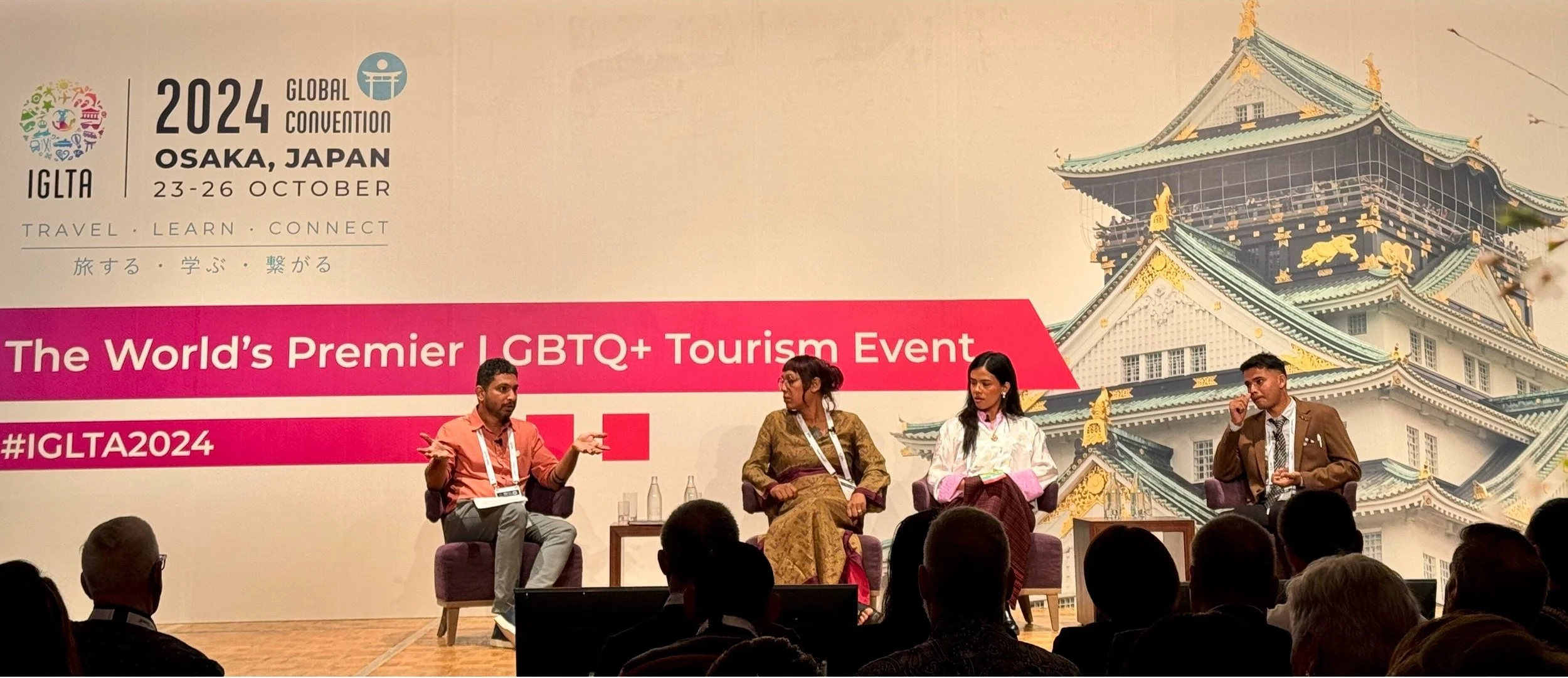 From left: Dinesh Perera, Founder of Foozoo Travel - Sri Lanka; Rudrani Chhertri, Founder and Managing Director of Mitr Trust & Sexual Minority male Association for Rights (SMARt) - India; Regita Gurung, Vice President of QVoB Tours and Travels - Bhutan; Aayam Poudel, Co-founder of Queermandu Tours and Travel - Nepal. Photo by AST.