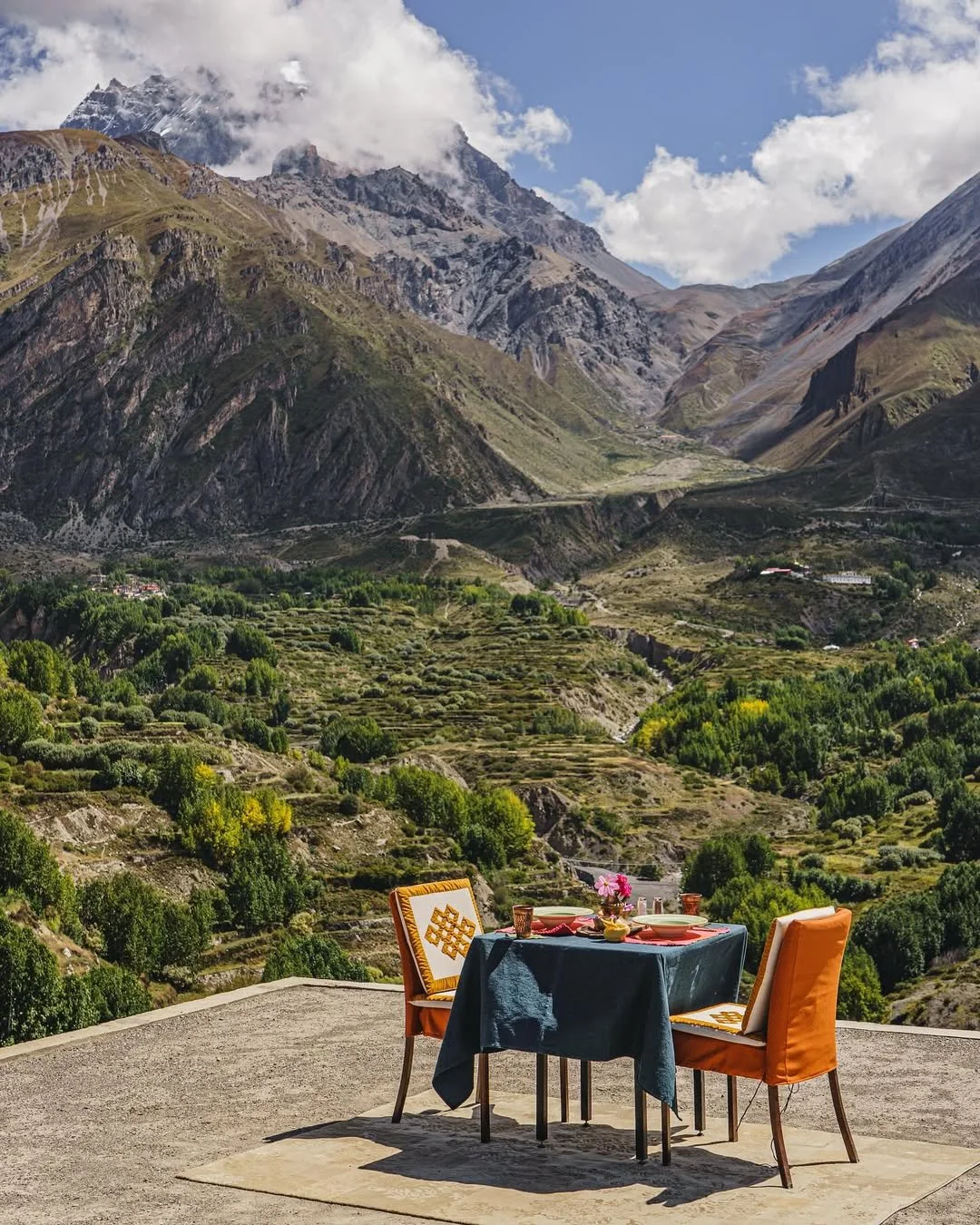 One of those meetings led them to an 11th-generation Amchi, a traditional Himalayan healer, who co-created the pillar of the lodge’s wellness program. Another led them to Ms. Kamala, a local female leader in Marpha village, who now hosts guests for an intimate chef’s-table-style lunch inside her home.